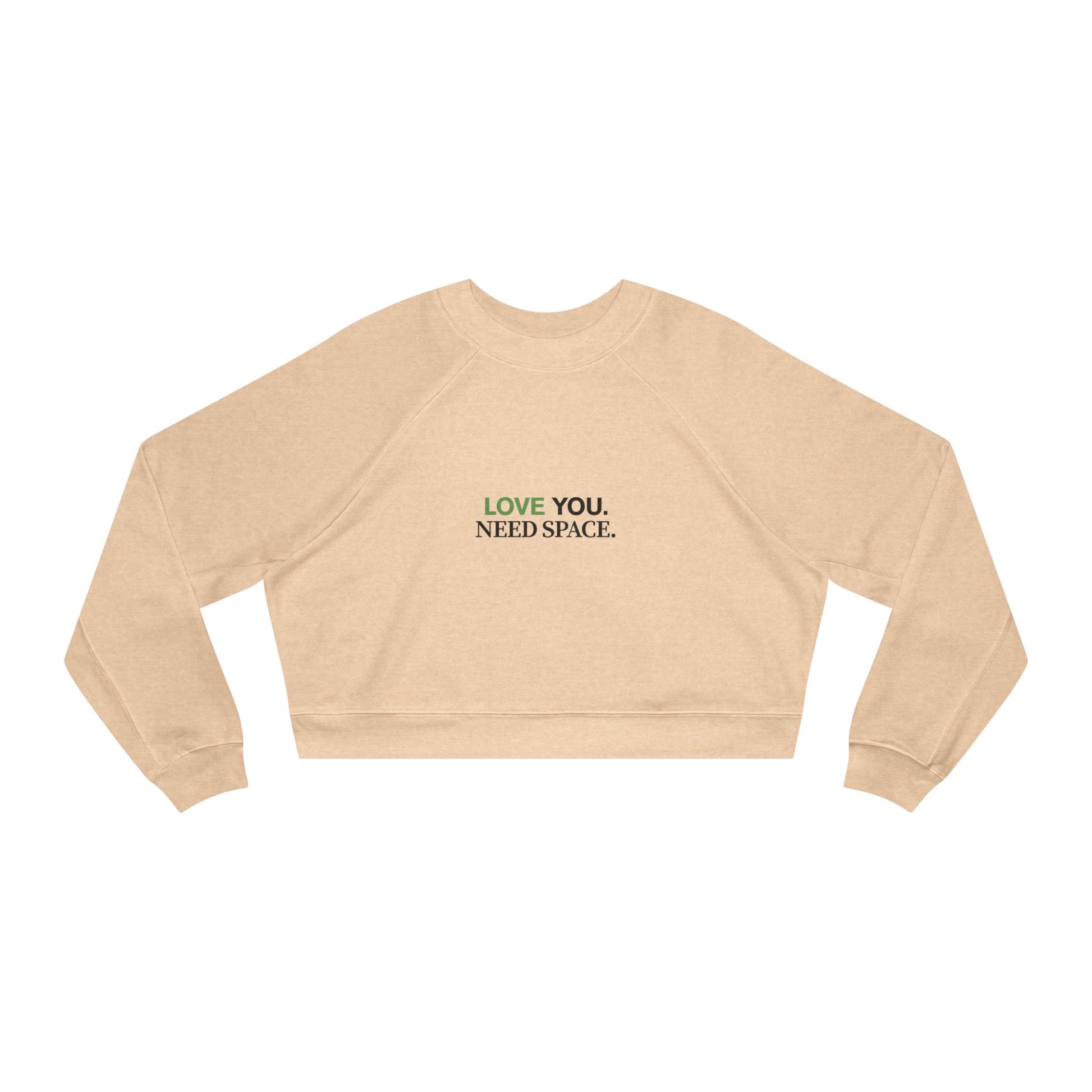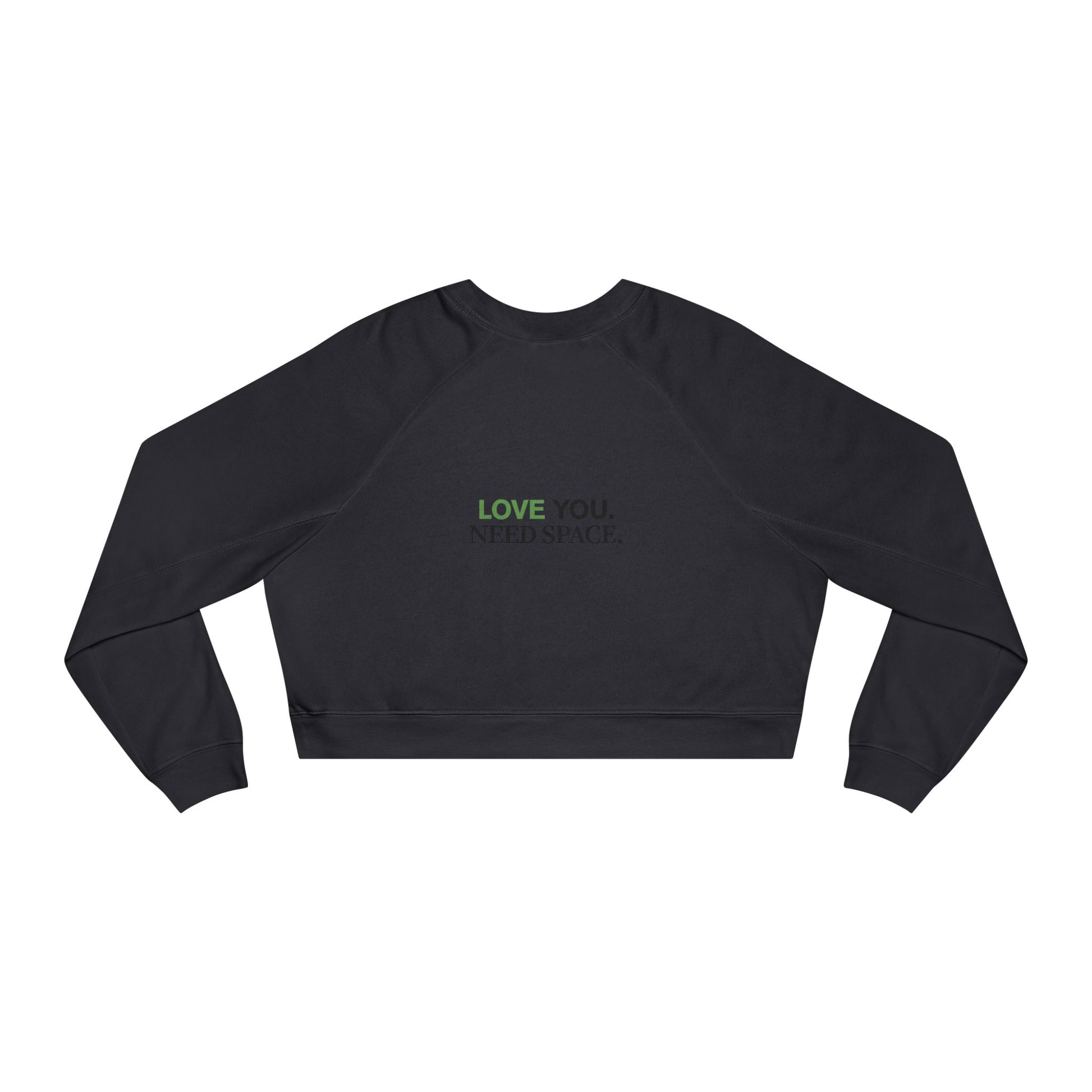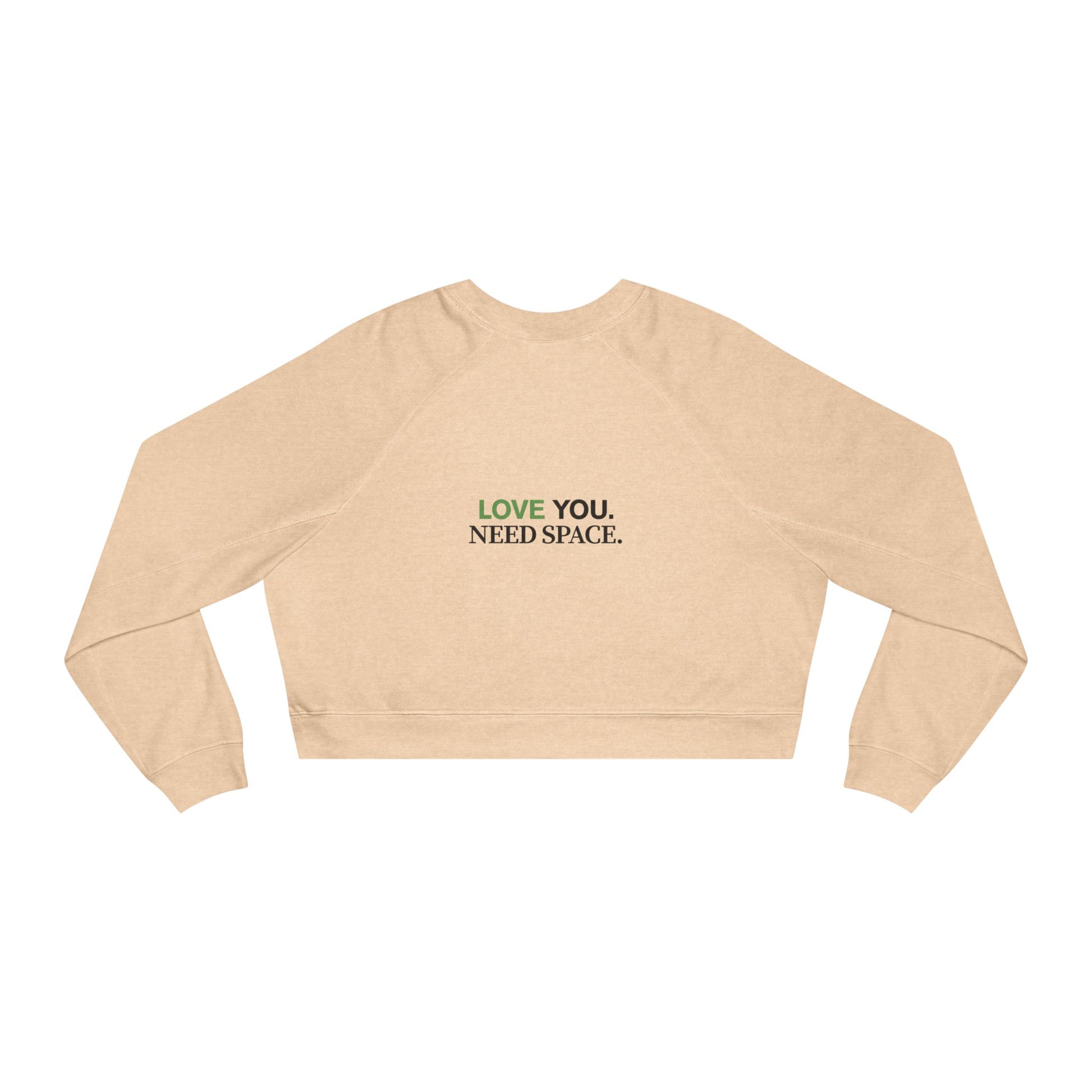 Cropped Pullover — "Love You. Need Space." Minimalist Slogan Sweatshirt