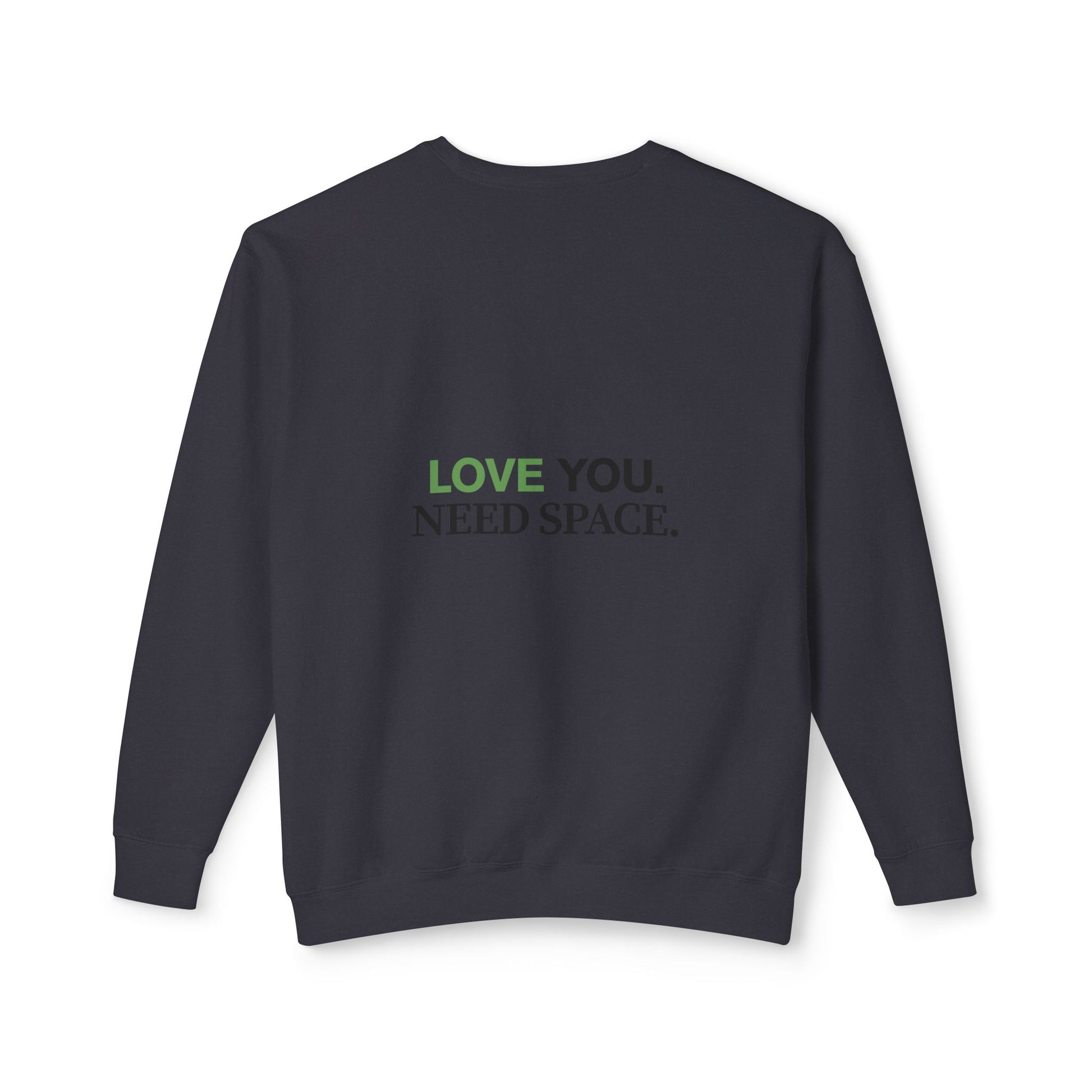 'Love You. Need Space.' Crewneck Sweatshirt — Minimal Relationship Quote Sweatshirt