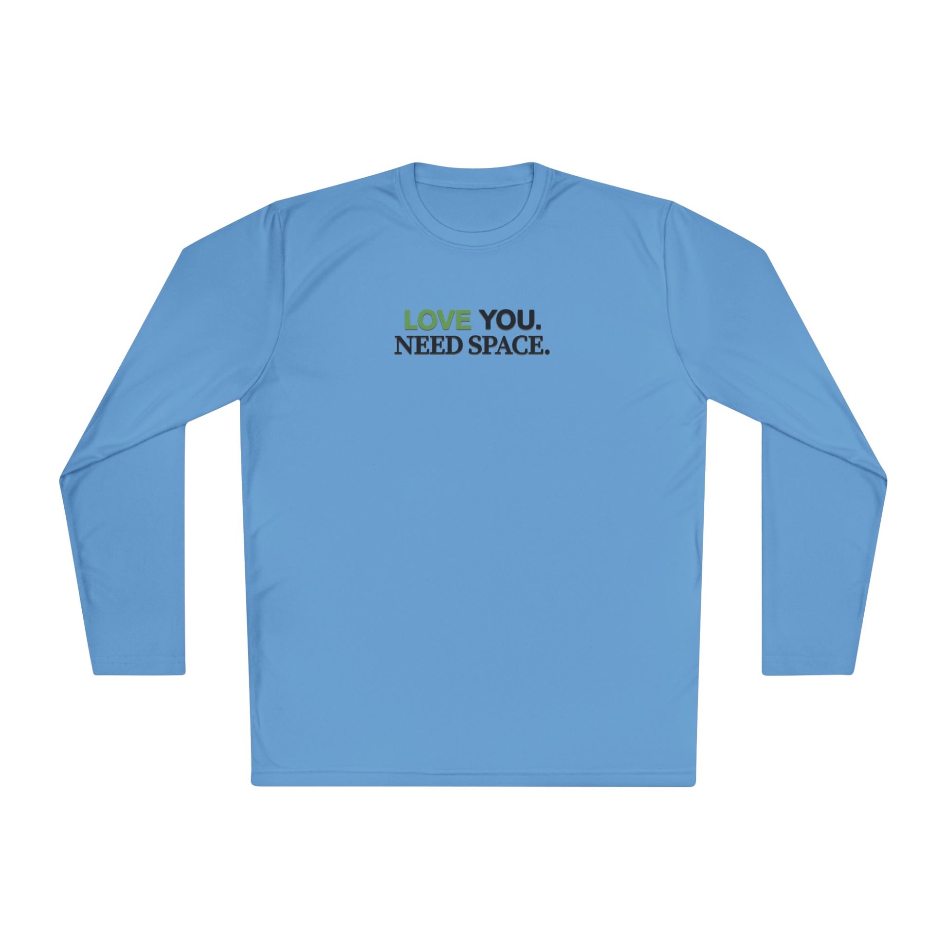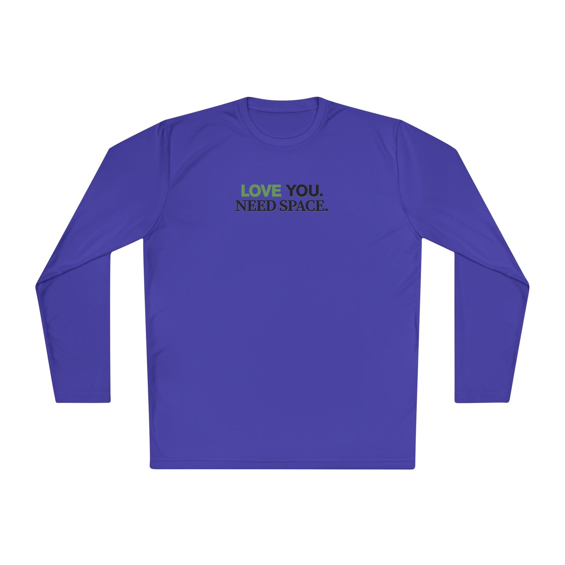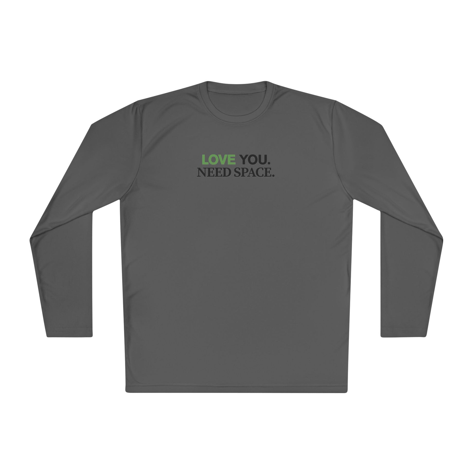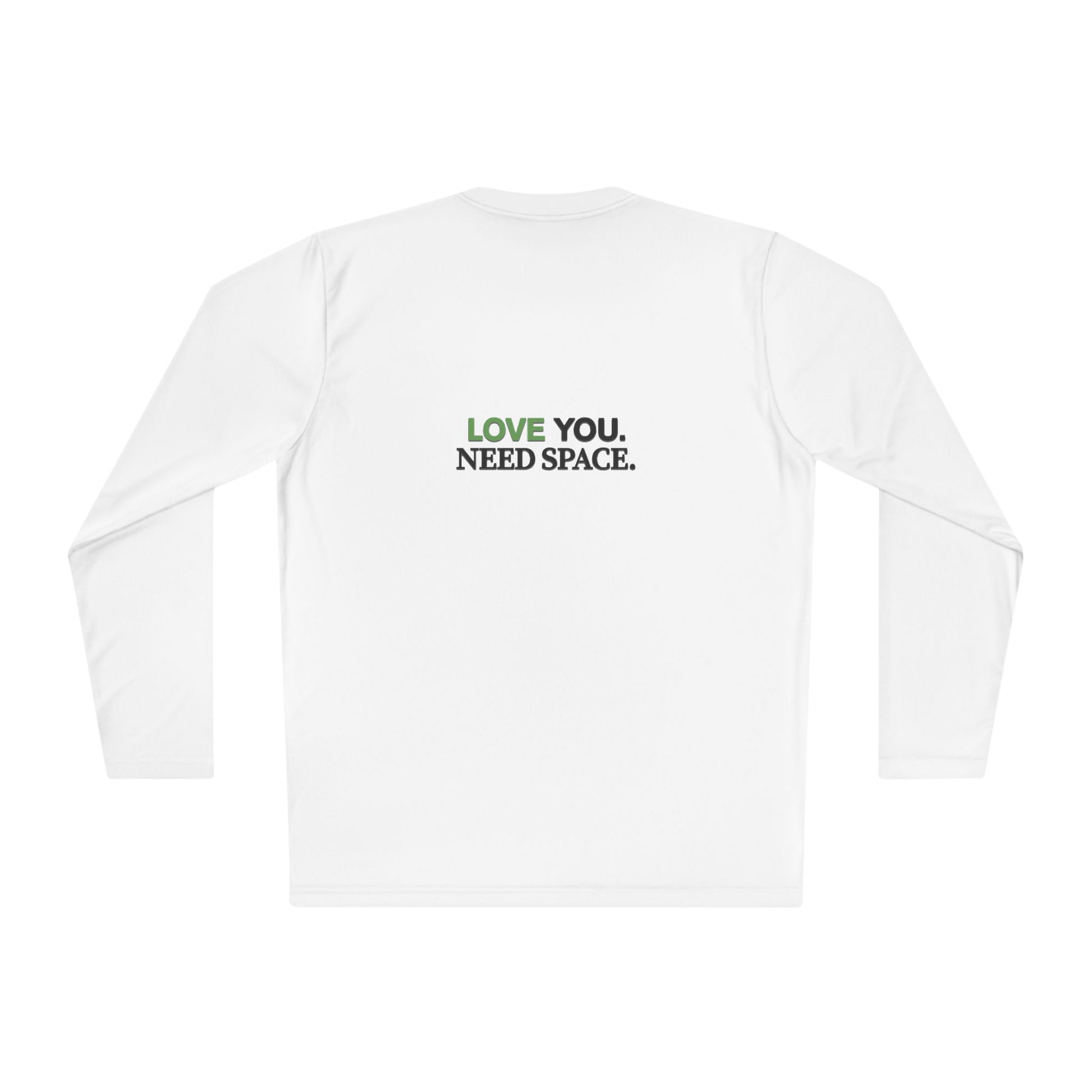 A lightweight long-sleeve tee that speaks with quiet honesty. Clean, breathable polyester with a slim athletic cut keeps you cool on busy days or long walks. The understated front-and-back text — “LOVE YOU. NEED SPACE.” — balances warmth with boundary, making it easy to wear when you want to show care without losing yourself. Soft to the touch, quick-drying, and printed with crisp DTF lettering, this shirt settles into your routine: layered under a jacket for crisp mornings, worn solo on errands, or packed for trips where comfort and clarity matter.
