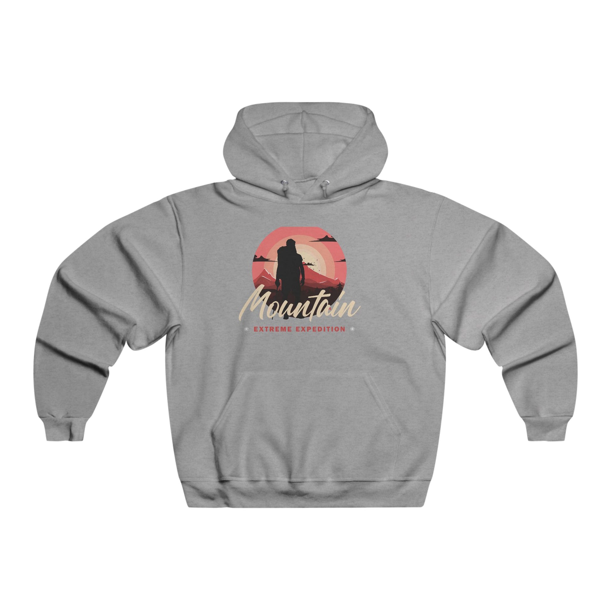 A cozy, roomy hoodie with a sunlit mountain scene printed front and back — made for mornings when the trail calls and evenings by the campfire. The design shows a lone hiker silhouetted against warm reds and golds, evoking early sunrise climbs and slow, deliberate moments on the ridge. Wear it layered over a tee for cool-weather treks, or pull it on for relaxed weekends at the trailhead. The loose fit and soft blend keep movement easy, while the kangaroo pocket and adjustable hood hold warmth and small essentials. This hoodie feels like the quiet confidence of someone who prefers steep paths and long views.