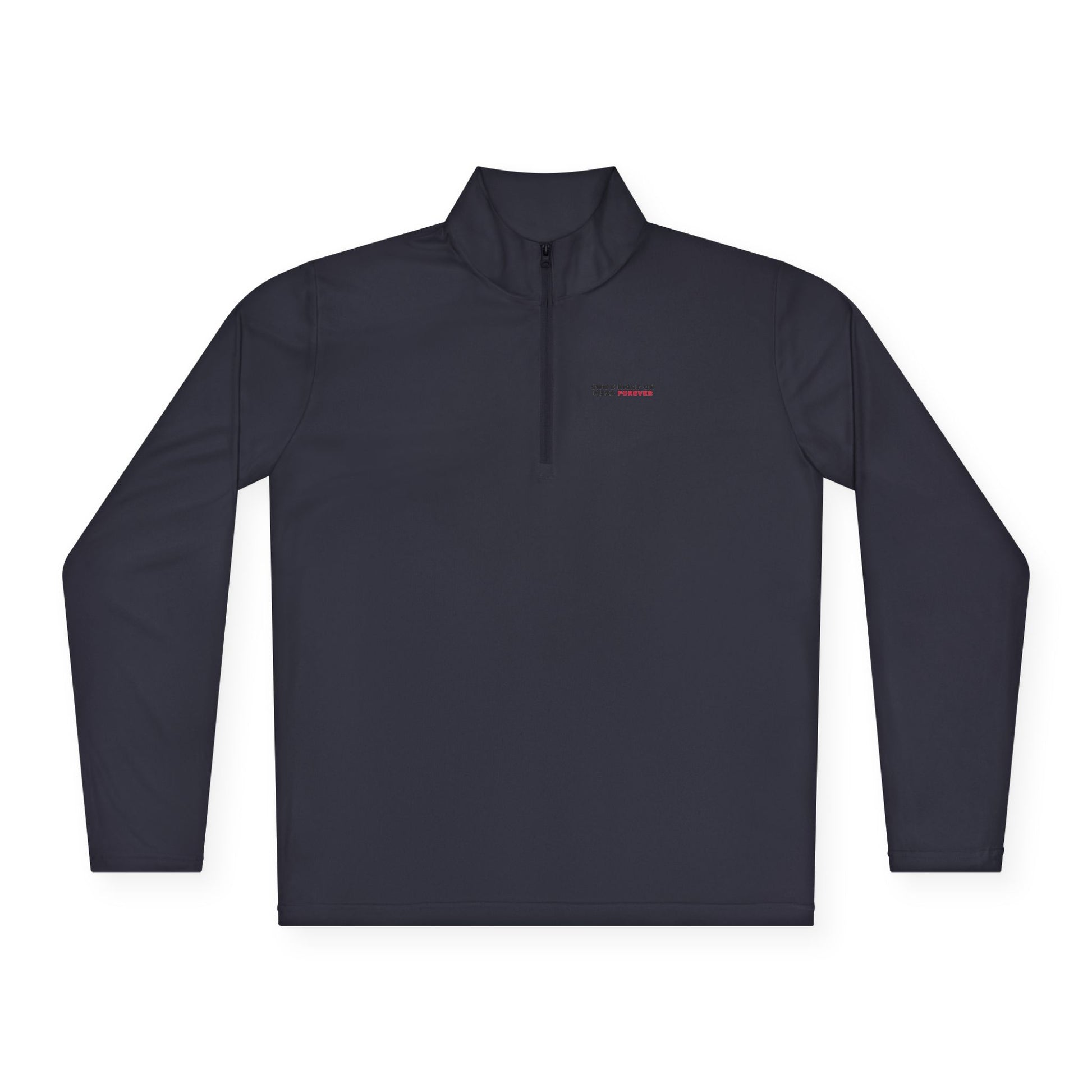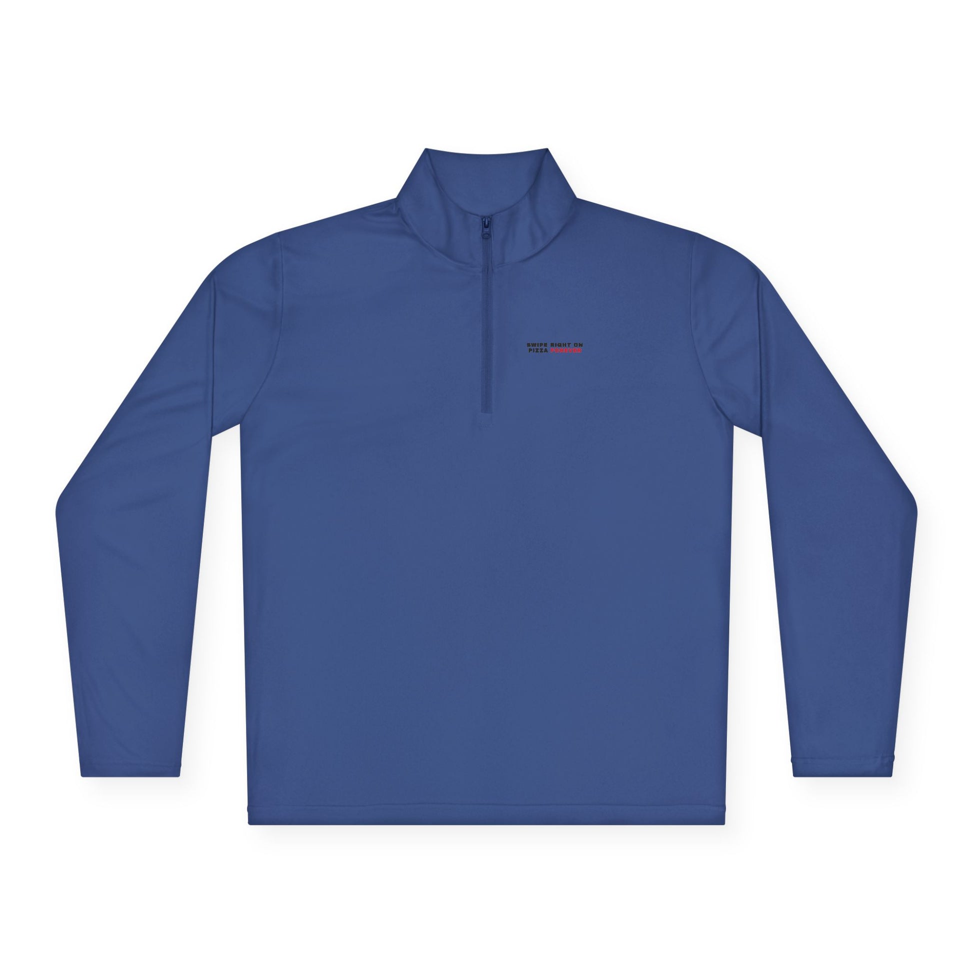 Quarter-Zip Pullover — "Swipe Right on Pizza Forever" Embroidered Casual Pullover