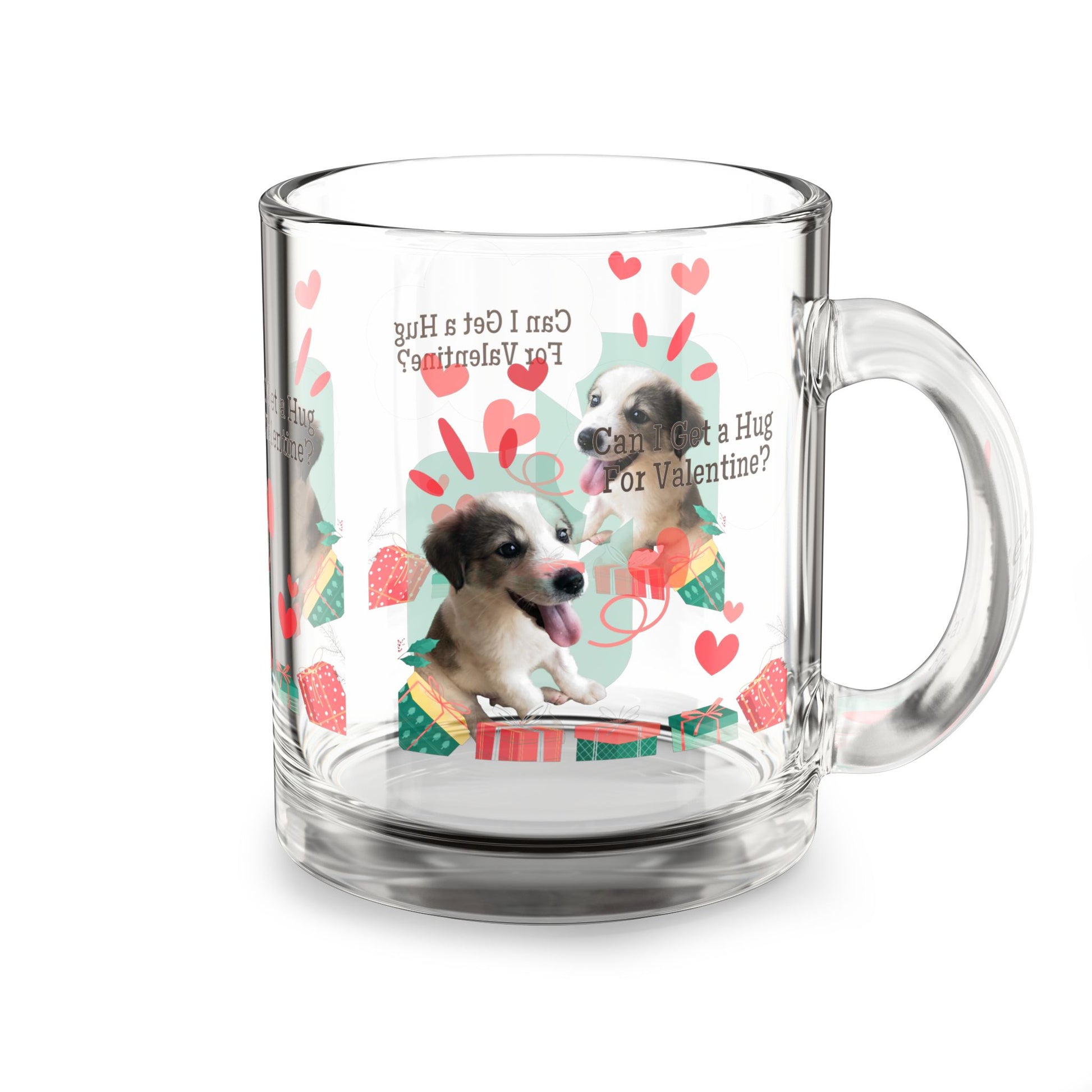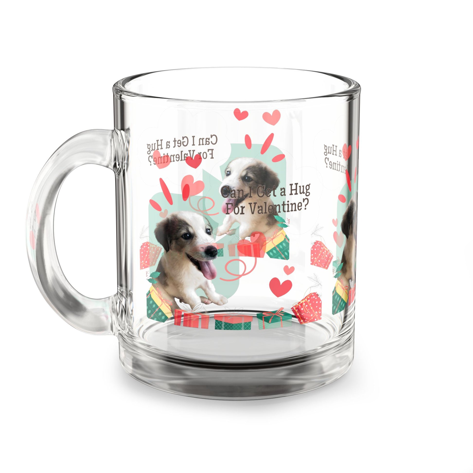 Valentine Puppy Glass Mug – "Can I Get a Hug for Valentine?" 10oz